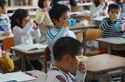 給食をモリモリ食べています