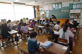 私が、2年生の教室を回った時はテストをしていた時と、外で体育をしていた時なので、撮影はしませんでした。