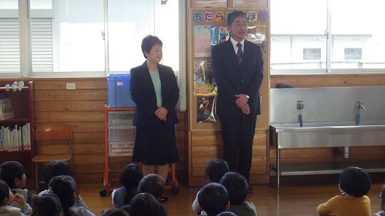 代表児童がお礼の言葉を言い、花鉢と手紙を渡しました。その後、ふれあい班で招待者の方々とゲームで遊び、最後に「365日の紙飛行機」を歌いました。招待者の方からは、「歌に感動した。」とか「もっと子どもたちのために頑張らなくては。」とのコメントをいただきました。