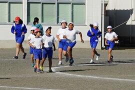 3年生は、最初に持久走をした後、ハンドベースボールをしました。