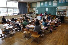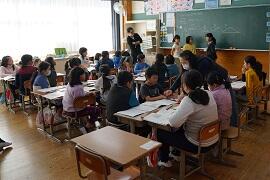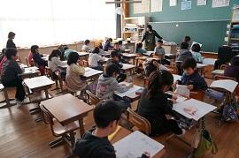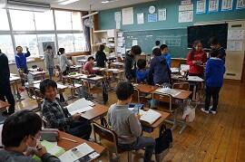 5年生は、総合の学習が早く終わり、片付けをしていました。