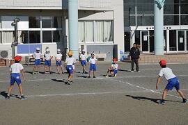 3年生は、ハンドベースボールでした。1・2年生の体育でのゲームは、鬼遊びややさしいゲームでしたが、3・4年生では、サッカーのようなゴール型ゲーム、バレーボールのようなネット型ゲーム、そして今日のようなベースボール型ゲームのように、ゲームが細分化されていき、それぞれのゲームに合った、体の動き方を身に付けたり、勝つための作戦をたてる思考力を伸ばしていきます。