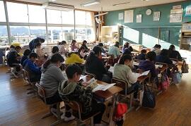 4時間めの授業の様子です。グループでの学習が多くなってきたような気がします。漢字や計算などの答えは教えてはいけませんが、やり方を教えるのは必要です。わからないことをそのままにしておくよりは、やり方を教えたり教わったりして、今日の勉強はその日のうちにできるようになった方がよいのです。だから、グループになって教えあいます。徐々に、わからないことを教わることができるようになってきました。今までは、できないということが恥ずかしかったようです。現在でも、恥ずかしい子はいますが、徐々に減ってきているようです。
