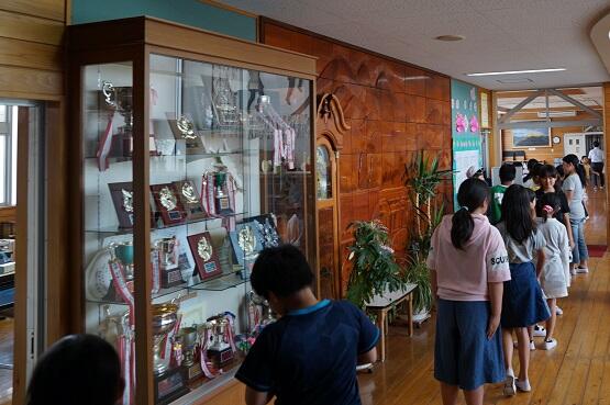 海浜ウォークラリーも無事終わり、ロッジで一休みした後、海の展示館を見学中です。これから夕食に向かいます。
