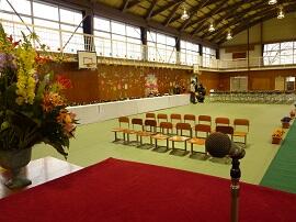 5・6年生全員で協力しながら、明日の入学式の会場をつくりました。