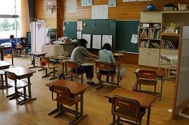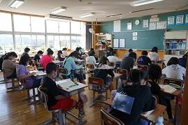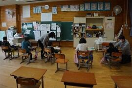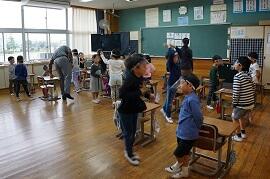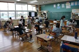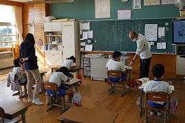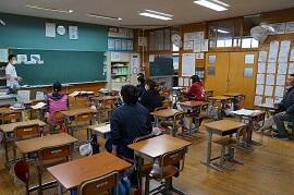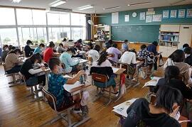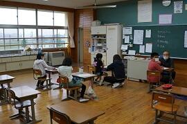 音楽や体育などの技能教科をしているクラスが多かったです。町内の授業研究会に出張しているクラスもありました。2・3組は、全員交流学習でした。