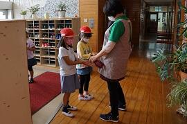 遊びから帰ると、消毒や手洗いをしている子がいました。いつも忘れず立派です。
