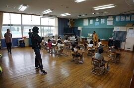 6年生は、芸術鑑賞教室のワークショップを体育館でしていました。最初は恥ずかしがっていましたが、だんだん振り付けも大きくなり、表情もよくなってきました。指導していただいた合唱団の方は、東京から来校するにあたり、わざわざPCR検査をしてきたそうです。これが、感染拡大防止対策と合唱活動の両立を目指す新しい生活様式なのかと感じました。