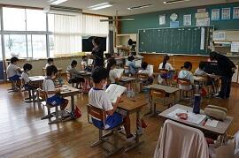3年生は、毛筆の後片付けをしているところでした。3年生の書写からは毛筆が入ってきます。筆で字形を整えた字を書くことがねらいですが、準備や後片付けをすることも、初めての子たちには大変です。でも、だんだん手際よくなり、最近では墨で手や服を汚すこともなくなってきたようです。