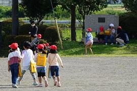1年生は校庭で秋を探していました。