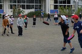 1年生は、校庭で秋を探していました。