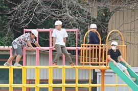 4年生は鉄棒をしていました。