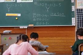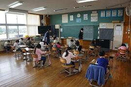 4年生は、算数のわり算のテストを返していました。そして、間違いの多かった問題を復習していました。