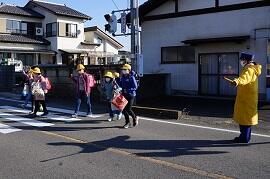 立哨指導をしていると、パトカーが通り過ぎました。大宮駐在所のおもわりさん、いつもありがとうございます。
