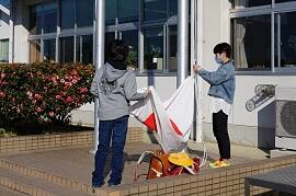 6年生に教えてもらったとおりに、国旗を揚げています。これを伝統というのでしょう。6年生が忘れずに取り組んだことを、5年生が確実に受け継いでいます。5年生も6年生もえらいです。