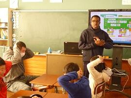 液晶テレビを使い、英語のクイズなどが出題されました。