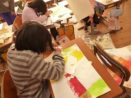 書写の作品「はす」と、図工の作品「まぼろしの花」が掲示されています。