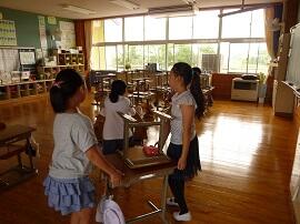 今朝の子どもたちは、登校すると早速、協力して皆んなの机・いすを運び入れてくれました。