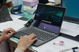 教師用のタブレットは、教員自身でセットアップしています。今年度中に子どもたちがタブレットを使った授業ができるよう、まず教員が使ってみます。