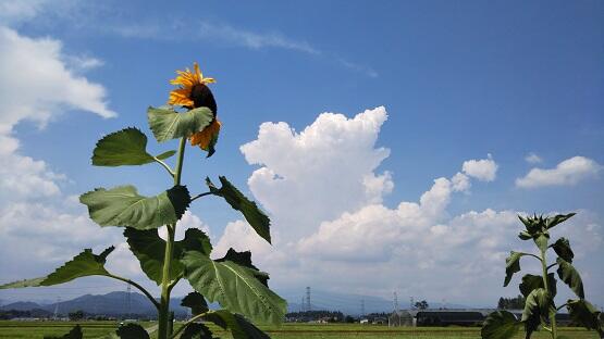 5月に、大宮コミュニティ推進協議会様よりいただいたヒマワリが、こんなに立派になりました。うまくいけば4mぐらいに伸びるそうですが、本校は3mちょっとぐらいです。今のところ、強風にも倒れず、花を咲かせようとしています。