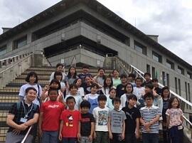 5年生が海浜自然の家に到着しました。これから入所式です。予定より15分早く着きました。皆さん元気です。