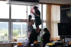 6時間めが終わった後、5年生が体育館で運動会で使うパイプ椅子にビニルテープを巻きました。6年生は、運動会の係に分かれて、担当教員と打合せを行っていました。応援団は音楽室で応援の練習をし、開閉会式係はスローガンを窓ガラスに貼っていました。全体練習でも運動会本番でも高学年の活躍する姿が期待できそうです。