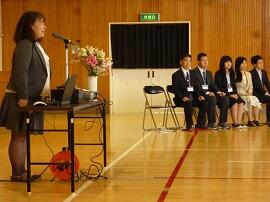 6名の先生方をお迎えしました。 代表児童が、お迎えの言葉を述べました。