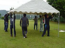 PTA体育部員の皆様には、早朝よりテント設営に御協力いただきました。感謝申し上げます。