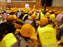 明後日(23日(金))のシールラリーに向けて、下校前に全児童を体育館に集めて確認をしました。