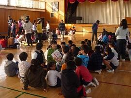 少しひんやりした朝の体育館に、子どもたちの元気な声が響きわたりました。