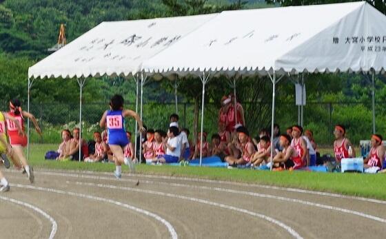暑い中、よく頑張りました。練習の時より良い記録(自己ベスト)を出した人がたくさんいました。応援もがんばりました。競技役員の児童もがんばりました。テントの中にいても、日焼けしていると思います。お風呂に入る時しみるでしょう。おつかれさまでした。
