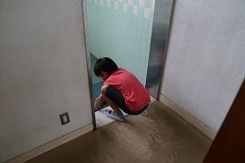 大久保・肘内バスには、非常口がついています。そこで、緊急時に避難できるよう、非常口から降りてみました。非常口は高いので、タラップのように段差を作りました。