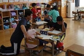 英語を流ちょうに話せれば最高ですが、英語圏でも英語圏じゃなくても、自分の思いや考えが相手に伝わることが大切だと考えます。言葉だけでなく、ジェスチャーや簡単な絵で、伝えたいことを相手に伝わることが大切だと考えています。相手の目を見て、訴えたいことを聞き取るだけでなく、感じ取る「聞く姿勢」も大切です。それがコミュニケーションだと思います。どちらのクラスも、よくできていたと思われます。