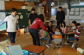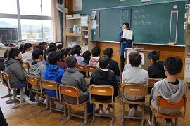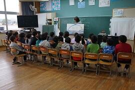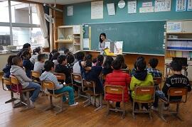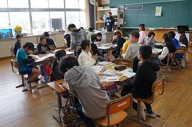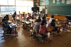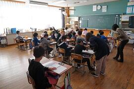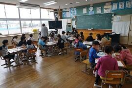 11月12日(火)、2年生と4年生が町総合公園で和太鼓を体験しました。ゲームで体験したことはあるものの、本物はまた違った感触でした。伝統に触れながらも、太鼓をたたくことで音楽を楽しんでもらいたいものです。