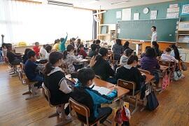 11月8日(金)の朝の活動は、クラスの日でした。テーマは、1~3年生と2組が「ボランティアって何?」、4年生が「災害ボランティアって何?」、5年生が「福祉ボランティアって何?」、6年生が「NPOって何?」でした。1~3年生と2組は、「友だちや家族など、ごく身近に生活している人にボランティア精神を発揮し優しくなってもらいたい。」というねらいです。4年生は、3年生の社会科で町の様子を学習し、災害にも町民の暮らしを守る取り組みがあることを知ったり、4年生になって消防署を見学し災害が起きた時、私たちを守るしくみを勉強したりしたことを生かすために、自分たちはどうするかを考えさせるためのテーマです。5年生は、校外学習で保育園や高齢者施設や障がい者施設を見学したり、火曜サロンで高齢者と交流したりしことをもとに、自分たちでできることを考えさせるためのテーマです。6年生は、これまでも1年生など下級生に優しくしてきましたが、そのボランティア精神を自分だけでなく組織として発揮するためにどうすればよいかを考えさせるためのテーマでした。