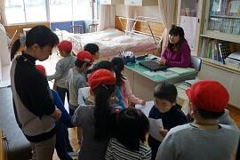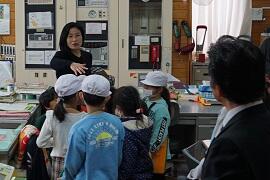 2・3時間めにおおみや保育園の年長さんを招待して、生活科の学習をしました。来年小学生になる年長さんに、小学校を案内しました。いつもは上級生に遊んでもらうことが多い1年生ですが、今日はしっかり者のお兄さんお姉さんでした。保育園の先生方からは、立派になった卒園生に感心したというお褒めの言葉をいただきました。おおみや保育園の皆さん、ご協力ありがとうございました。