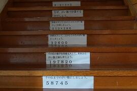 ランチルーム側の階段に、算数の問題を貼りました。TVで紹介されたのを参考にして、楽しみながら算数の学力をつけてほしいと考えました。高学年の女子が「あら、こんなのできない。アハハ。」と笑っていました。4年生で習いましたよ。