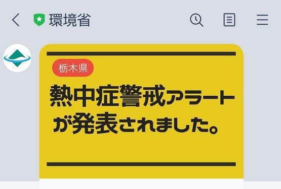 栃木県に熱中症警戒アラートが18時に発表されました。「熱中症の危険性が高くなると予想されるため、予防対策を普段以上に徹底することが重要です。」とのメッセージがありました。明日の塩谷町は暑さ指数が31で危険レベルです。明朝にまた確認した上で、警戒アラートが出ていれば、外での活動は中止または延期になります。
