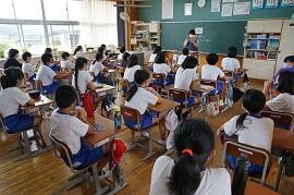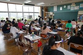 4年生は、算数のわり算のテストを返していました。そして、間違いの多かった問題を復習していました。
