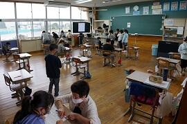コロナに翻弄された子どもたちでした。登校後は、何とか学習に追いつこうと頑張ったり、友だちと仲よくしようと努力したりしていた感じがします。教職員は、臨時休業の分を挽回しようと、何とかして分かりやすく教えようとしていたようでした。こうして、戦時中以外で初めての臨時休業であり、世界中の人々が不安に陥った1学期が終わりました。保護者の皆様には、たくさんの一斉メールにも素早く対応していただき、さらに、感染防止や家庭学習の協力、心のケア、食事の用意などの臨時休業中の対応を含め、たくさんお世話になりました。深いご理解と温かいご協力、ありがとうございました。