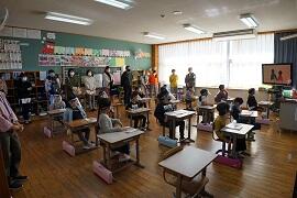 10月22日(木)、朝の会でスクール・サポート・スタッフを各教室を回って紹介しました。このスクール・サポート・スタッフは、感染防止のために消毒・検温・換気など新たに増えた業務を支援する県の非常勤職員です。2月末まで、毎日午前中勤務します。ありがたいことです。県や町の配慮に感謝します。