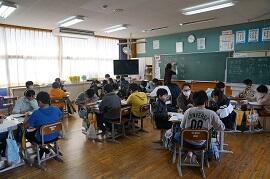 1時間めの様子です。どのクラスもしっかり勉強しているように見えました。1時間めの終わり頃なので、勉強が終わったクラスもありました。