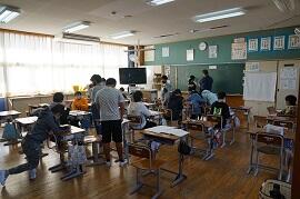 音楽や体育などの技能教科をしているクラスが多かったです。町内の授業研究会に出張しているクラスもありました。2・3組は、全員交流学習でした。