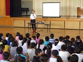 ユーモアも交えた指導で、子どもたちは楽しく活動に取り組みました。