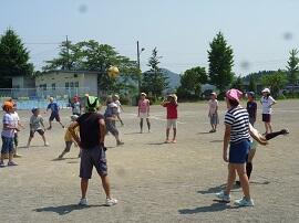 子どもたちは暑さに負けることなく、友だちと元気に校庭で遊んでいます。