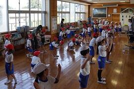 1・2年生は、合同体育で、運動会の練習をしていました。2年生が手本を示していました。いつもはお世話になることの多い2年生ですが、今日は全員お兄さん・お姉さん気分で、1年生に教えていました。2年生がたくましく見えました。