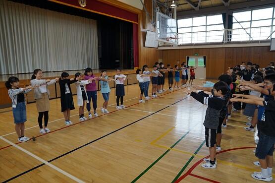 今朝の朝の活動は、たくましい委員会による健康クイズ集会でした。体育館に集まり、最初は健康に関する〇×クイズをしました。次に、七夕を歌いながらグーパー体操をしました。「全校生がたくましくなるためにはどうすればよいか」と考え、企画運営したイベントでした。前年度踏襲にとらわれず、新しいものを創り上げたのは立派ですし、こういった指導を繰り返して主体性が養われていくのではないかなと考えます。
