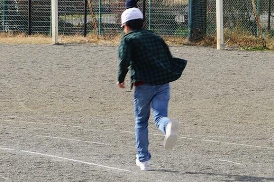 5・6年生の駅伝が終わった次の日の業間休みの様子です。4年生がなわとびをしています。ある男の子が持久走の練習をしています。すばらしいです。