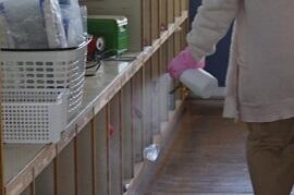 感染性胃腸炎の可能性があるので、念のため塩素系漂白剤で消毒しています。アルコールでは除菌できないのが厄介です。消毒後の室内は、プールのような臭いがしていました。塩素が効いているようです。