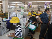 スーパーで働く人々のようすや商品を売るための工夫について学習し、家の人に頼まれた買い物をしました。